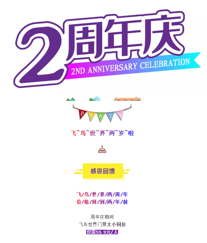 飞鸟世界两周年,价格回到两年前!大小同价,59.9元抢!