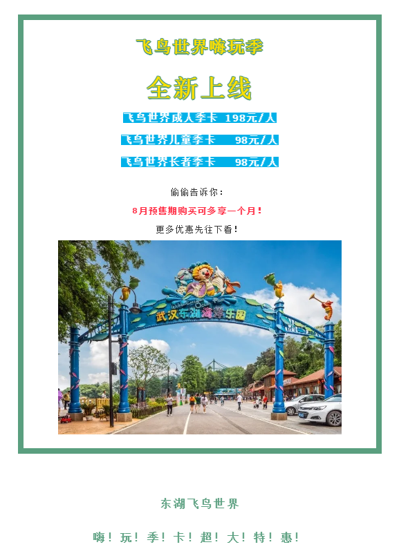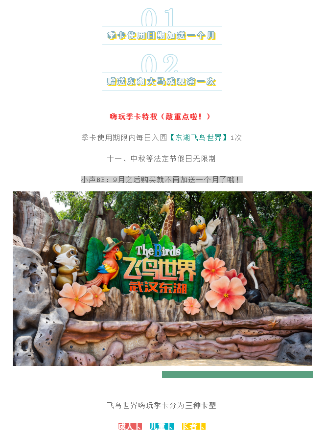 东湖飞鸟世界【季卡】全新上线!限时买1送2!