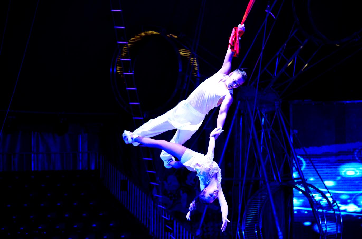 空中绸吊表演可以说是东湖大马戏